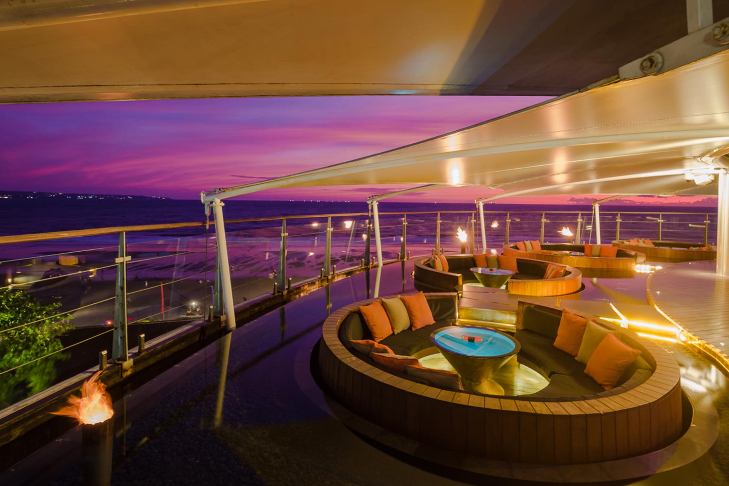 Commune with explosive sunsets, drink a cocktail with a tropical tang, let the savvy DJs make it lit. The Double-Six Rooftop – Sunset Bar has a seating capacity of up to 200 guests, or 1,000 standing – this is the ingredient for your parties or event. A massive LED light display backlights a raised DJ stage and a dance floor platform; built-in booths, private lounging areas, a vast sun deck, Double-Six Rooftop – Sunset Bar has everything. Renowned as among the very best of Seminyak’s large-scale venues, of course the food and beverage offerings are on par. Raised above expectations, with service above the norm, the Double-Six Rooftop – Sunset Bar is the best of times.